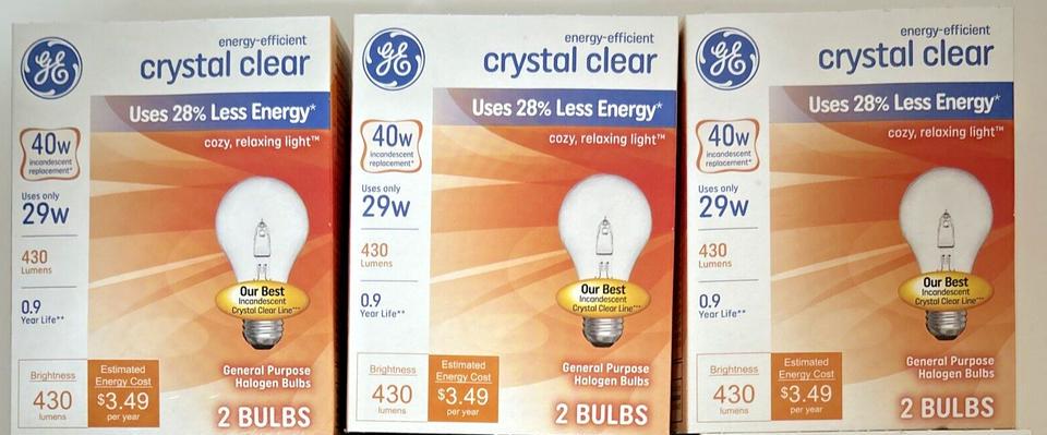 GE 6 Bulbs 40watt crystal clear Light Bulbs A19 Glass- Brightness 430 Lumens.