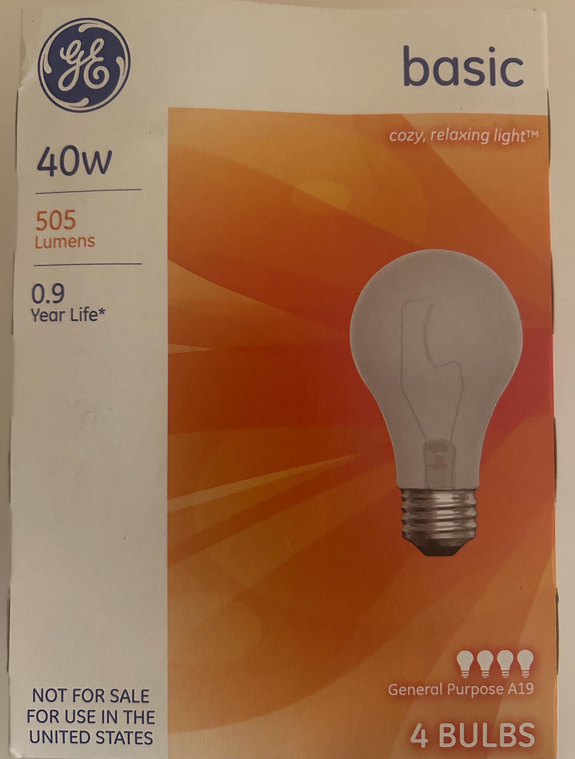 GE 4 Bulbs 40watt Soft White Light Bulbs A19 Glass- Brightness 490 Lumens.