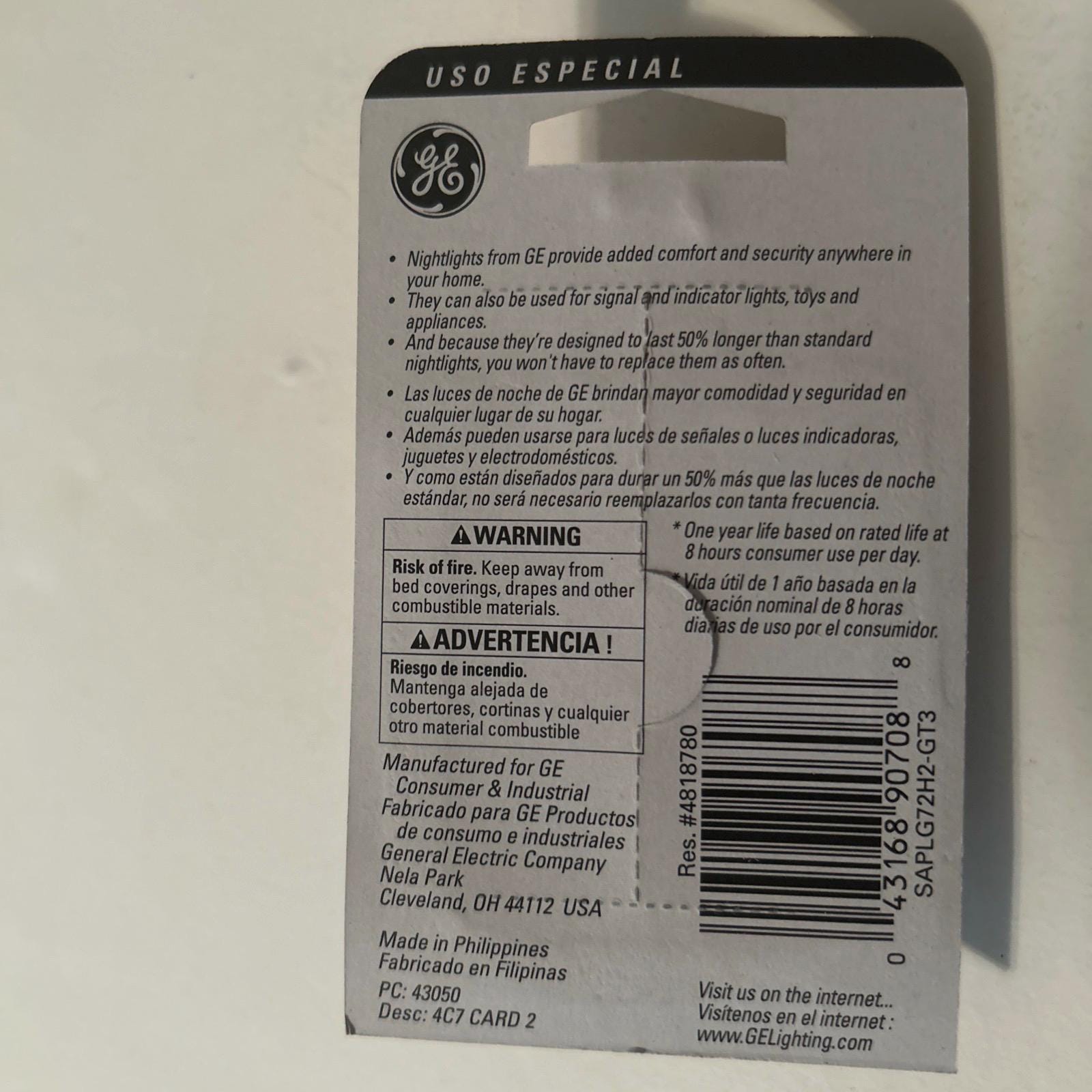 GE nightlight C7 long life 4watt specialty bulbs 90708 uses for appliances toys signal and indicator lights
