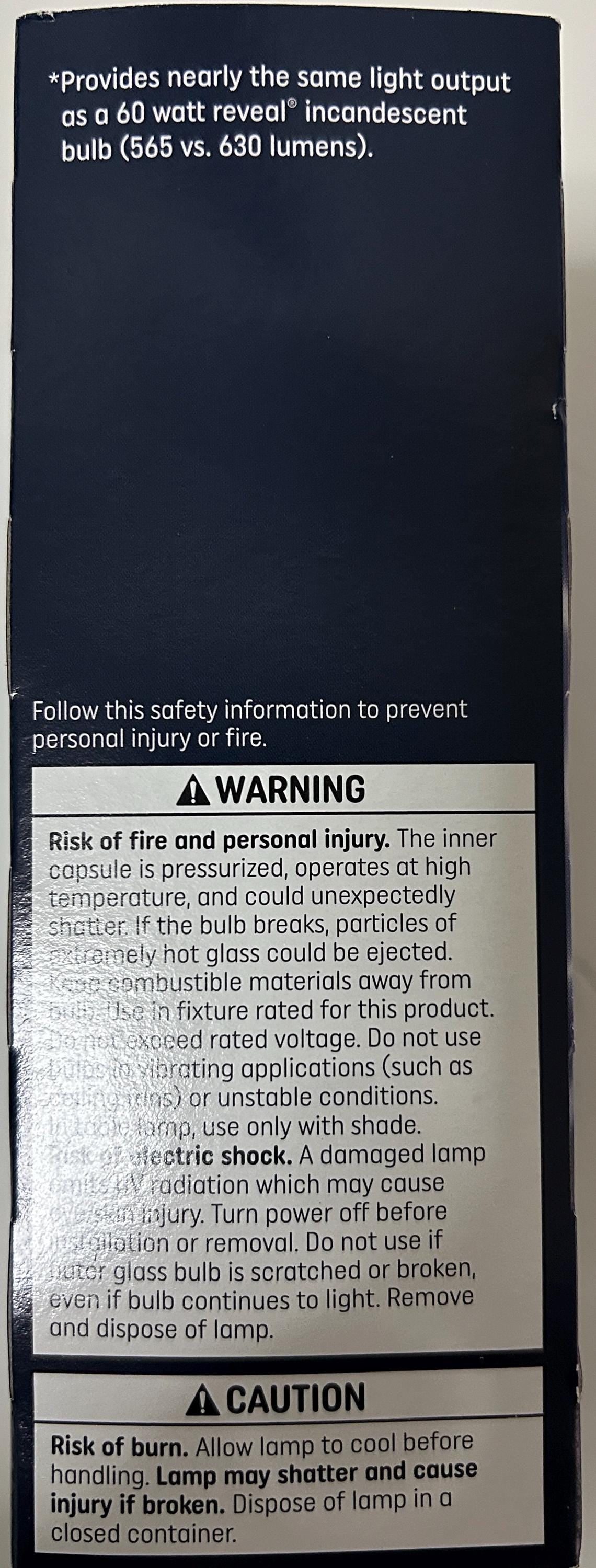 GE 60w Reveal HD light bulbs Basic classic replacement uses only 43w